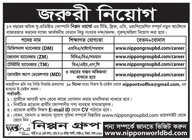 The latest Nippon Group Bangladesh Job Circular is now available online. All the interested candidates can easily apply for the job circular from here. Because this post is all about the latest Nippon Group Job circular. In Addition, Nippon Group Bangladesh is the authorized license from NIPPON WORLD JAPAN. for assembling, marketing, and distributing all sorts of NIPPON WORLD Products in Bangladesh. So the authority of the company is always in need of some expert people around them. This time they are looking for some young and energetic people around the. They have published a new job circular for some vacant posts. So all the interested candidates can easily apply for the job circular. Nippon world is one of the most popular Electronic Product Production companies. Moreover, they produce almost all kinds of electric products in their factory. So they are always in need of some energetic people.